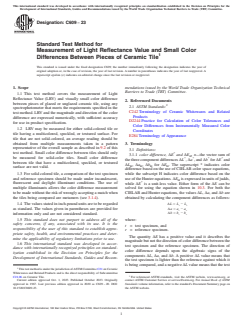 ASTM C609-23 - Standard Test Method for Measurement of Light Reflectance Value and Small Color Differences Between Pieces of Ceramic Tile