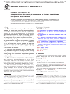 ASTM A578/A578M-17(2023) - Standard Specification for Straight-Beam Ultrasonic Examination of Rolled Steel Plates for Special Applications