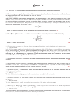 ASTM E3323-22 is a standard published by ASTM International. Its full title is "Standard Test Method for Lipid Quantitation in Liposomal Formulations Using High Performance Liquid Chromatography (HPLC) with an Evaporative Light-Scattering Detector (ELSD)". This standard covers: SIGNIFICANCE AND USE 5.1 Lipid composition in a liposomal formulation is an important aspect during synthesis of liposomes, which determines stability, surface characteristics, drug encapsulation, and drug release capabilities. The cholesterol component plays a key role in controlled drug release by adding stability to the liposome. A small variation in the lipid composition can significantly alter the parameters mentioned above (15). 5.2 Variation in the lipid composition in the liposomal formulation may influence the safety and efficacy of the product. Therefore, chemical composition of the liposomes shall be determined. 5.3 The pharmaceutical industry and regulatory agencies require QC, QA, specifications, thorough characterization, and quantification of lipid components (16, 17). 5.4 This test method can be used to ascertain variations in the lipid component profiling of various liposomal formulations. However, this test method does not intend to identify chemical degradation products (18). 5.5 Analyzing the stability of analytes and their chemical degradation profiles as a result of oxidation or hydrolysis is beyond the scope of this test method (18, 19). SCOPE 1.1 This test method describes an analytical technique to quantify lipid components that are often present in liposomal formulations as major components. 1.2 This test method uses high performance liquid chromatography (HPLC) to separate lipids in liposomal formulations and evaporative light-scattering detection (ELSD) to quantify the individual components. 1.3 This test method quantifies three major organic components in liposomal formulations: cholesterol, 1,2-distearoyl-sn-glycero-3-phosphoethanolamine-N-[methoxy(polyethylene glycol)-2000] (DSPE-PEG 2000), and hydrogenated soy L-α-phosphatidylcholine (HSPC). 1.4 This test method can estimate the absolute concentration of cholesterol, DSPE-PEG 2000, and HSPC and their ratio (DSPE-PEG 2000: HSPC: cholesterol) in liposomal formulations. 1.5 This test method describes preparation of calibration standards and samples, HPLC and ELSD instrumentation, method development and method validation, sample analysis, and data reporting. 1.6 The detection limits and quantitation limits for the analytes (lipid components) in this test method are in the range of 2 µg/g to 4 µg/g and 7 µg/g to 10 μg/g, respectively. The analytical measurement ranges for cholesterol, DSPE-PEG 2000, and HSPC are 10 µg/g to 165 µg/g, 10 µg/g to 300 µg/g, and 10 µg/g to 200 µg/g, respectively. 1.7 Significant digits and rounding of all reported values have been performed according to the guidelines as established in Practice D6026. 1.8 Units—The values stated in SI units are to be regarded as the standard. Where appropriate, c.g.s units in addition to SI units are included in this standard. 1.9 This standard does not purport to address all of the safety concerns, if any, associated with its use. It is the responsibility of the user of this standard to establish appropriate safety, health, and environmental practices and determine the applicability of regulatory limitations prior to use. 1.10 This international standard was developed in accordance with internationally recognized principles on standardization established in the Decision on Principles for the Development of International Standards, Guides and Recommendations issued by the World Trade Organization Technical Barriers to Trade (TBT) Committee.