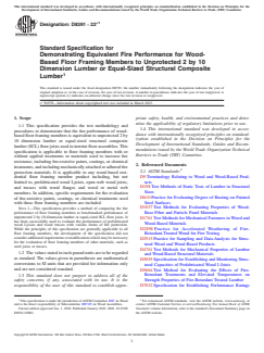 ASTM D8391-22e1 is the internationally recognized standard developed by ASTM for establishing and demonstrating the equivalent fire performance of wood-based floor framing members as compared to unprotected 2 by 10 dimension lumber or equal-sized structural composite lumber (SCL) used in interior floor assemblies. This specification defines robust test methodologies and procedures to assess whether various wood-based products, including prefabricated wood I-joists, open-web wood joists, and trusses, provide comparable fire resistance performance. It is applicable to products with or without applied fire protection treatments, such as fire-resistive paints, coatings, chemical treatments, or mechanically attached protection.