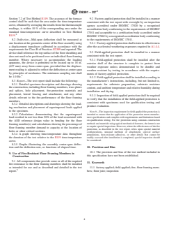 - Reporting and Documentation: Outlines expectations for comprehensive test reporting, including detailed descriptions of tested assemblies, load calculations, temperature-time curves, deflection data, and any special installation practices or product treatments.