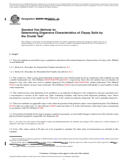 REDLINE ASTM D6572-21 - Standard Test Methods for Determining Dispersive Characteristics of Clayey Soils by the Crumb Test