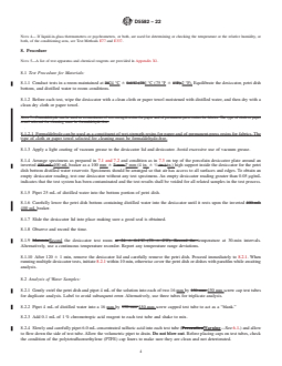 3.2 This test method incorporates a desiccator, with the desiccant removed, having a 250 mm (10 in.) inside diameter and a volume of approximately 10.5 L (641 in.3) with the desiccator lid in place. Conditions controlled in the procedure are as follows: