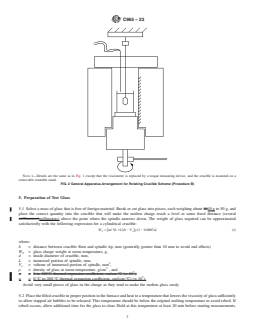 5.2 Place the filled crucible in proper position in the furnace and heat to a temperature that lowers the viscosity of glass sufficiently