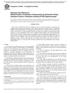 ASTM D6348-12(2020) - Standard Test Method for Determination of Gaseous Compounds by Extractive Direct Interface Fourier Transform Infrared (FTIR) Spectroscopy