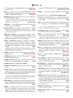 ASTM F412-23 is a standard published by ASTM International. Its full title is "Standard Terminology Relating to Plastic Piping Systems". This standard covers: SCOPE 1.1 This terminology is a compilation of definitions of technical terms used in the plastic piping industry. Terms that are generally understood or adequately defined in other readily available sources are not included. 1.2 When a term is used in an ASTM document for which Committee F17 is responsible it is included only when judged, after review, by Subcommittee F17.91 to be a generally usable term. 1.3 Definitions that are identical to those published by other ASTM committees or other standards organizations are identified with the committee number (for example, D20) or with the abbreviation of the name of the organization (for example, IUPAC International Union of Pure and Applied Chemistry). 1.4 A definition is a single sentence with additional information included in notes. 1.5 Definitions are followed by the committee responsible for the standard(s) (for example, [F17.26]) and standard numbers(s) in which they are used (for example, F714). 1.6 Abbreviated Terminology: 1.6.1 Abbreviated terminology is intended to provide uniform contractions of terms relating to plastic piping that have evolved through widespread common usage. The compilation in this standard has been prepared to avoid the occurrence of more than one abbreviated term for a given plastics piping term and to avoid multiple meanings for abbreviated terms. 1.6.2 The abbreviated terminology and descriptions in this standard are intended to be consistent with usage in plastics piping and the standards under F17 jurisdiction. Other ASTM Committees may assign a different word-phrase description to the same abbreviated terminology. In such cases, the abbreviated terms in this standard shall apply to usage in F17 standards, or if widespread misunderstanding could result from conflicting abbreviated terminology descriptions, the abbreviated terminology for the word-phrase shall not be used in F17 standards. 1.6.3 Acronyms and Initialisms—A word formed from the letters or parts of words of a longer word-phrase, usually from the initial letters or parts of the words. An Acronym is pronounced as a word, for example radar, for radio detection and ranging. An Initialism is pronounced as a series of letters, for example DOT for Department of Transportation. 1.6.4 The Acronym or Initialism description is the origin word-phrase for the Acronym or Initialism, not a definition. 1.7 This international standard was developed in accordance with internationally recognized principles on standardization established in the Decision on Principles for the Development of International Standards, Guides and Recommendations issued by the World Trade Organization Technical Barriers to Trade (TBT) Committee.