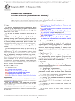 ASTM D6470-99(2020) - Standard Test Method for Salt in Crude Oils (Potentiometric Method)