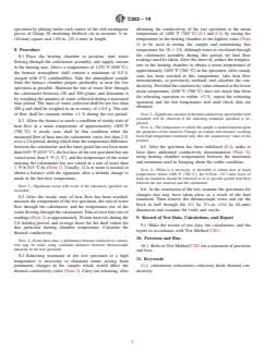 The procedure requires use of the calorimeter and guard assembly described in ASTM C201, enhanced with additional insulation and refractory fiber spacers. The setup creates a large, stable thermal gradient during testing.Specimen Preparation and Reheating