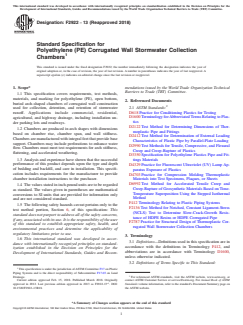 ASTM F2922-13(2018) - Standard Specification for Polyethylene (PE) Corrugated Wall Stormwater Collection Chambers