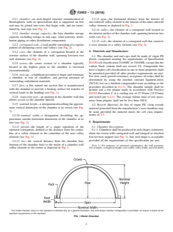 ABSTRACT This specification covers requirements, test methods, materials, and marking for polyethylene (PE), open bottom, buried arch-shaped chambers of corrugated wall construction used for collection, detention, and retention of stormwater runoff. These collection chambers can be used as commercial, residential, agricultural, and highway drainage, including installation under parking lots and roadways. This specification indicates the classifications, tolerances, and dimensions of the chambers. It also lists the test methods that examine the physical and mechanical properties of finished chambers. SCOPE 1.1 This specification covers requirements, test methods, materials, and marking for polyethylene (PE), open bottom, buried arch-shaped chambers of corrugated wall construction used for collection, detention, and retention of stormwater runoff. Applications include commercial, residential, agricultural, and highway drainage, including installation under parking lots and roadways. 1.2 Chambers are produced in arch shapes with dimensions based on chamber rise, chamber span, and wall stiffness. Chambers are manufactured with integral feet that provide base support. Chambers may include perforations to enhance water flow. Chambers must meet test requirements for arch stiffness, flattening, and accelerated weathering. 1.3 Analysis and experience have shown that the successful performance of this product depends upon the type and depth of bedding and backfill, and care in installation. This specification includes requirements for the manufacturer to provide chamber installation instructions to the purchaser. 1.4 The values stated in inch-pound units are to be regarded as standard. The values given in parentheses are mathematical conversions to SI units that are provided for information only and are not considered standard. 1.5 The following safety hazards caveat pertains only to the test method portion, Section 6, of this specification: This standard does not purport to address all of the safety concerns, if any, associated with its use. It is the responsibility of the user of this standard to establish appropriate safety, health, and environmental practices and determine the applicability of regulatory limitations prior to use. 1.6 This international standard was developed in accordance with internationally recognized principles on standardization established in the Decision on Principles for the Development of International Standards, Guides and Recommendations issued by the World Trade Organization Technical Barriers to Trade (TBT) Committee.