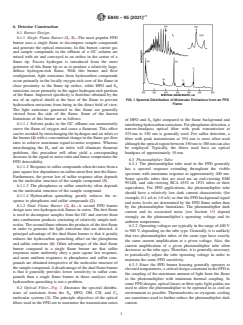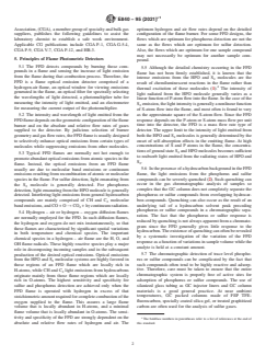 1.2 This practice is directly applicable to an FPD that employs a hydrogen-air flame burner, an optical filter for selective spectral viewing of light emitted by the flame, and a photomultiplier tube for measuring the intensity of light emitted.