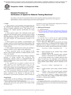 ASTM E2658-15(2023) - Standard Practices for Verification of Speed for Material Testing Machines