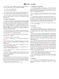 SIGNIFICANCE AND USE 4.1 This practice provides for the processing of liquid samples. It will provide the optimum sample processing for visual contamination methods such as Test Methods F312. SCOPE 1.1 This practice covers the processing of in-service fluids in preparation for particulate contamination analysis using membrane filters and is limited only by the liquid-to-membrane filter compatibility. 1.2 The practice covers the procedure for filtering a measured volume of liquid through a membrane filter. When this practice is used, the particulate matter will be randomly distributed on the filter surface for subsequent contamination analysis methods. 1.3 The practice describes procedures to allow handling particles in the size range between 2 µm and 1000 μm with minimum losses during handling. 1.4 The values stated in SI units are to be regarded as standard. No other units of measurement are included in this standard. 1.5 This international standard was developed in accordance with internationally recognized principles on standardization established in the Decision on Principles for the Development of International Standards, Guides and Recommendations issued by the World Trade Organization Technical Barriers to Trade (TBT) Committee.