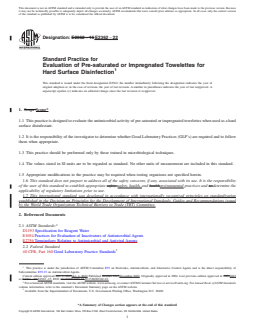 REDLINE ASTM E2362-22 - Standard Practice for Evaluation of Pre-saturated or Impregnated Towelettes for Hard Surface Disinfection