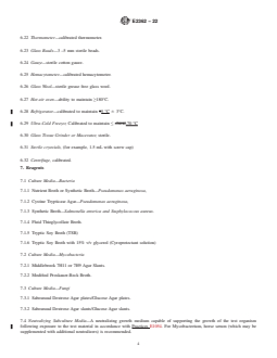 - Test Microorganisms: Specifies relevant test organisms such as Staphylococcus aureus, Salmonella enterica, Pseudomonas aeruginosa, Mycobacterium bovis, and Trichophyton mentagrophytes, with provisions for adapting the method for additional organisms.