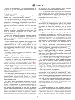 ASTM C1855-18 is a standard published by ASTM International. Its full title is "Standard Test Method for Determination of Uranium and Plutonium Concentration in Aqueous Solutions Using Hybrid K-Edge Densitometry and X-Ray Fluorescence". This standard covers: SIGNIFICANCE AND USE 5.1 The HKED technique is highly element specific and depends upon a well-known controlled geometry. 5.2 The HKED technique can provide concentration measurements of actinides in solutions with precision typically better than 0.3 % for uranium concentrations >50 g/L and 1 % for plutonium in typical U-Pu solutions for a typical measurement time of 3 × 1000 s (3 replicates, 1000 s live time each) (1). 5.3 For pure plutonium only product solutions, the KED technique can achieve measurement precisions better than 0.3 % for plutonium concentrations >50 g/L for a typical measurement time of 3 × 1000 s. 5.4 For pure uranium only solutions, precisions of better than 0.3 % can be achieved using the KED technique for uranium concentrations >50 g/L, for a typical measurement time of 3 × 3600 s. 5.5 For uranium only or plutonium only solutions of concentrations approximately 1 g/L, assayed using XRF, a measurement precision of 1.0 % has been achieved (1). For solutions of concentration approximately 50 g/L, assayed using XRF, measurement precisions of 0.2 % or better have been achieved. The typical measurement time for stand-alone XRF assay is 3 × 3000 s. 5.6 Quality Control (QC) samples are assayed for a typical measurement time of 3 × 3000 s. 5.7 It is applicable when solutions to be measured are homogeneous with respect to chemical composition. 5.8 Results are typically used for fuel fabrication, process control, quality control, material control and accountancy, and safeguards in nuclear fuel reprocessing plants. Each application can have its own data quality objectives (Guide C1068). 5.9 The HKED instrument may use a single cylindrical vial for both the KED and XRF measurements, or separate sample containers for KED and XRF. The typical values for the path length of the rectangular cuvette and the inner diameter of the cylindrical vial are given in 7.8. 5.10 The transfer of the sample into the HKED system can be accomplished either horizontally b... SCOPE 1.1 This test method specifies the determination of the volumetric uranium and plutonium concentrations, typically, in nitric acid solutions through the combination of K-Edge absorption Densitometry (KED) and K X-Ray fluorescence (XRF) using an X-Ray generator. It is known as the “Hybrid K-Edge” (HKED) technique whose original implementation is described in Ref (1).2 The method is applicable to dissolver (input) solutions and product solutions. The test method also specifies the determination of low concentrations ( 1.2 This test method is applicable to the following common-use conditions: 1.2.1 Spent nuclear fuel reprocessing and fuel production. 1.2.2 Homogeneous aqueous solutions contained in cylindrical vials or cuvettes. HKED systems may use two separate sample containers, namely a rectangular cuvette for KED and a cylindrical vial for XRF. Alternatively, there are HKED systems that use a sample contained in a single cylindrical vial, for both K-Edge and XRF. 1.2.3 The results produced by the two sample configuration (a rectangular cuvette for K-Edge densitometry and a cylindrical vial for XRF) are compliant with the International Target Values (ITV) (1). 1.2.4 The precision results produced by the single cylindrical vial configuration are degraded in comparison to the two container system. 1.2.5 This test method is applicable to facilities that do not adopt the ITVs, but have their own Data Quality Objectives (DQO). 1.2.6 Solutions which contain uranium and plutonium with uranium concentration of 150 to 250 g/L and a U:Pu ratio of 100:1 typically, in the presence of fission products with β, γ, activity of up to 10 TBq/L. 1.2.6.1 This test method is not applicable to samples where a minor element such as U needs to be quantified in which Pu is the major element. 1.2.6.2 This test method is applicable for common use process control applications for quantifying Pu in the 5 g/L to 30 g/L range ...