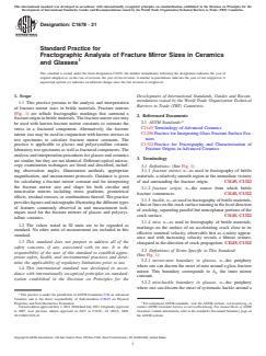 ASTM C1678-21 - Standard Practice for Fractographic Analysis of Fracture Mirror Sizes in Ceramics and Glasses