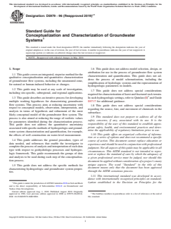 ASTM D5979-96(2019)e1 – Standard Guide for Conceptualization and Characterization of Groundwater Systems provides a structured, iterative approach for understanding groundwater flow systems. Published by ASTM International, this standard describes methods for both qualitative conceptualization and quantitative characterization-essential steps in groundwater investigations used for environmental, water resources, and site assessment projects.