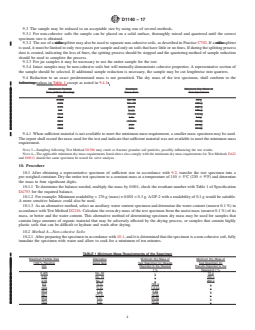 pre-weighed container. Dry the entire test specimen to a constant mass at a temperature of 110 6 5°C (230 6 9°F) and determine