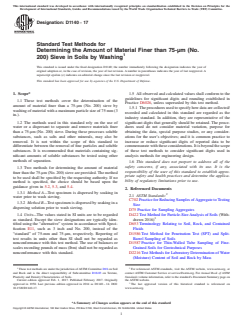 ASTM D1140-17 - Standard Test Methods for Determining the Amount of Material Finer than 75-μm (No. 200) Sieve in Soils by Washing