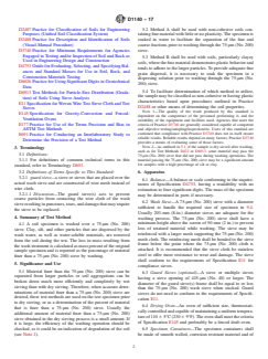 The standard specifies two reliable test methods for separating and quantifying material that passes the 75-μm (No. 200) sieve by wet sieving, which is more effective at breaking aggregates and separating fines compared to dry sieving.Test Methods