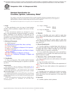 ASTM E785-81(2024) - Standard Specification for Crucibles, Ignition, Laboratory, Metal