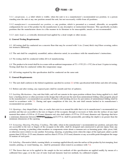 ASTM F2285-22 is a technical specification published by ASTM International. Its full title is "Standard Consumer Safety Performance Specification for Diaper Changing Tables for Commercial Use". This standard covers: SCOPE 1.1 This consumer safety specification establishes safety performance requirements, test methods, and labeling requirements to minimize the hazards to children presented by diaper changing tables as identified in the introduction. 1.2 This specification is intended to apply to diaper changing tables for commercial use. It is intended for use with children up to 3.5 years of age and weighing less than 50 lbs. 1.3 No diaper changing table produced after the approval date of this consumer safety performance specification shall, either by label or other means, indicate compliance with this specification unless it conforms to all requirements herein. 1.4 The values stated in inch-pound units are to be regarded as standard. The values given in parentheses are mathematical conversions to SI units that are provided for information only and are not considered standard. 1.5 The following precautionary caveat pertains only to the test method portion, Section 7, of this consumer safety specification: This standard does not purport to address all of the safety concerns, if any, associated with its use. It is the responsibility of the user of this standard to establish appropriate safety, health, and environmental practices and determine the applicability of regulatory limitations prior to use. 1.6 This international standard was developed in accordance with internationally recognized principles on standardization established in the Decision on Principles for the Development of International Standards, Guides and Recommendations issued by the World Trade Organization Technical Barriers to Trade (TBT) Committee.