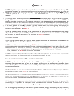 5.3.1 Outlier detection methods are used to demonstrate applicability of the calibration model for the analysis of the process sample spectrum. The outlier detection limits are based on historical as well as theoretical criteria. The outlier detection methods are used to establish whether the results obtained by an analyzer are potentially valid. The validation procedures are based on mathematical test criteria that indicate whether the process sample spectrum is within the range spanned by the analyzer system calibration model. If the sample spectrum is an outlier, the analyzer result is invalid. If the sample spectrum is not an outlier, then the analyzer result is valid providing that all other requirements for validity are...