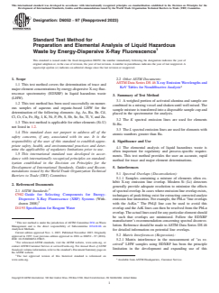 • Scope of Analysis: The standard applies to the determination of both trace and major elements via EDXRF in various types of liquid hazardous waste (LHW), expanding to include elements from Si to U as needed.