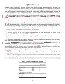 Techniques for placing freshly-mixed concrete into molds, including proper layering and use of tamping rods and vibrators. The standard specifies how specimens should be layered, consolidated, and struck off to ensure uniform density and minimal air entrapment.Curing Requirements