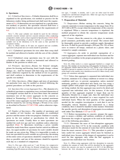 6.4 Specimen Size versus Aggregate Size—The diameter of a cylindrical specimen or minimum cross-sectional dimension of a