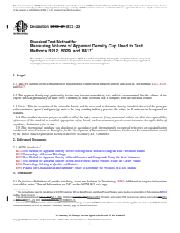 REDLINE ASTM B873-23 - Standard Test Method for Measuring Volume of Apparent Density Cup Used in Test Methods B212, B329, and B417