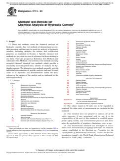ASTM C114-23: Standard Test Methods for Chemical Analysis of Hydraulic Cement provides comprehensive procedures for determining chemical composition in hydraulic cements, including portland cement. This standard, developed by ASTM International, is widely recognized for quality control and verification within cement manufacturing and testing laboratories. ASTM C114-23 defines both traditional reference test methods and alternative test methods for chemical analysis, ensuring accuracy, repeatability, and regulatory compliance in cement quality assurance.