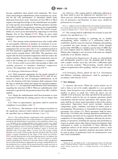 6.4.1 Heat treatment appropriate for the tensile strength of the electroplated part (see Specification B850) shall be performed to
