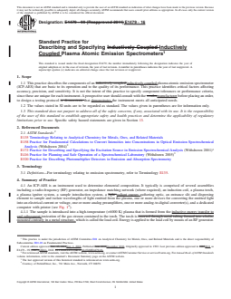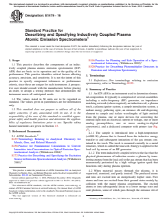 Keywords: ASTM E1479-16, ICP-AES, inductively coupled plasma, atomic emission spectrometer, elemental analysis, instrument specification, sample introduction, spectrometry, detector, training, laboratory safety, analytical chemistry standard.