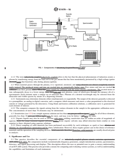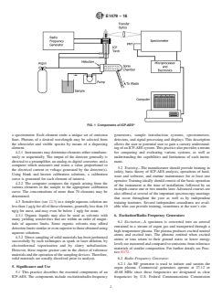 SIGNIFICANCE AND USE 5.1 This practice describes the essential components of an ICP-AES. The components include excitation/radio-frequency generators, sample introduction systems, spectrometers, detectors, and signal processing and displays. This description allows the user or potential user to gain a cursory understanding of an ICP-AES system. This practice also provides a means for comparing and evaluating various systems, as well as understanding the capabilities and limitations of each instrument. 5.2 Training—The manufacturer should provide training in safety, basic theory of ICP-AES analysis, operations of hardware and software, and routine maintenance for at least one operator. Training ideally should consist of the basic operation of the instrument at the time of installation, followed by an in-depth course one or two months later. Advanced courses are also offered at several of the important spectroscopy meetings that occur throughout the year as well as by independent training institutes. Several independent consultants are available who can provide training, sometimes at the user's site. SCOPE 1.1 This practice describes the components of an inductively coupled plasma atomic emission spectrometer (ICP-AES) that are basic to its operation and to the quality of its performance. This practice identifies critical factors affecting accuracy, precision, and sensitivity. It is not the intent of this practice to specify component tolerances or performance criteria, since these are unique for each instrument. A prospective user should consult with the manufacturer before placing an order, to design a testing protocol that demonstrates the instrument meets all anticipated needs. 1.2 The values stated in SI units are to be regarded as standard. The values given in parentheses are for information only. 1.3 This standard does not purport to address all of the safety concerns, if any, associated with its use. It is the responsibility of the user of this standard to establish appropriate safety and health practices and determine the applicability of regulatory limitations prior to use. Specific safety hazard statements are given in Section 13.