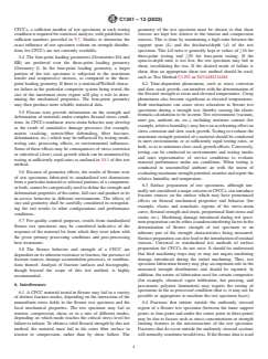 5.3 Unlike monolithic advanced ceramics which fracture catastrophically from a single dominant flaw, CFCCs generally experience “graceful” fracture from a cumulative damage process. Therefore, the volume of material subjected to a uniform flexural stress may not be as significant a factor in determining the flexural strength of CFCCs. However, the need to test a statistically significant number of flexure test specimens is not eliminated. Because of the probabilistic nature of the strength of the brittle matrices and of the ceramic...