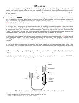 5.5 The flow rate can be determined using either a constant head test procedure or on the basis of a falling head test procedure. In either case, the flow column containing the geotextile or soil/geotextile is the same; only the head control devices change.