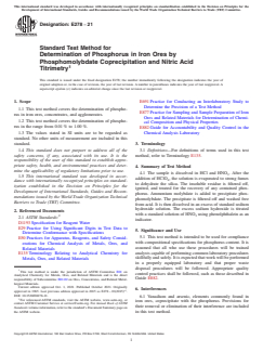 ASTM E278-21 - Standard Test Method for Determination of Phosphorus in Iron Ores by Phosphomolybdate Coprecipitation and Nitric Acid Titrimetry