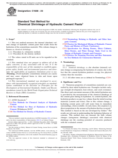 Keywords: ASTM C1608-23, chemical shrinkage, hydraulic cement paste, cement hydration, cement testing, volumetric method, density method, quality control, cement standards, concrete durability, ASTM International.