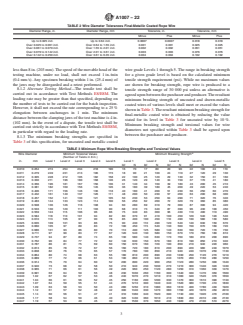 coated wires of various levels shall meet or exceed the values shown in Table 3. The resultant minimum breaking force for