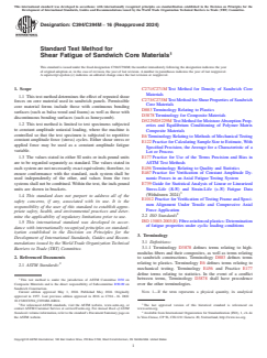 Keywords: ASTM C394, sandwich core shear fatigue, core durability, composite materials, repeated shear stress, fatigue testing, sandwich panel, engineering standards, cyclic loading, material qualification.