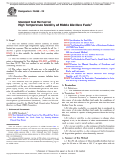 Keywords: ASTM D6468-22, high temperature stability, middle distillate fuels, diesel fuel stability, fuel oxidative stability, storage stability, filter pad rating, thermal stability test, fuel quality testing, ASTM fuel standards.