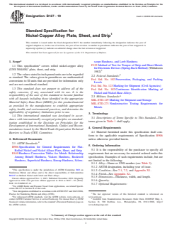 ASTM B127-19 - Standard Specification for Nickel-Copper Alloy Plate, Sheet, and Strip