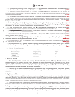 1.4 This guide is based on the use of current ASTM standards for thermal properties, where appropriate, and on the development of new test standards, where necessary. It is not the intent of this guide to rigidly specify particular thermal test methods for advanced ceramics. Guidance is provided on how to utilize the most commonly available ASTM thermal test methods, considering their capabilities and limitations.
