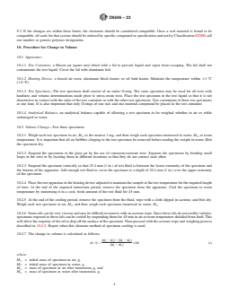 hardness and volume determinations made prior to stress-strain tests. Place the test specimen in the test liquid so that it is not