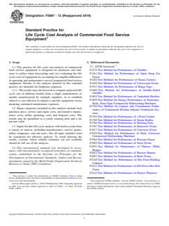 ASTM F2687-13(2019), Standard Practice for Life Cycle Cost Analysis of Commercial Food Service Equipment, is an international standard developed by ASTM International. This standard establishes a structured methodology for evaluating and forecasting the total cost of ownership of commercial food service equipment by accounting for differences in purchase, operation, maintenance, and disposal costs. The analysis is designed for both equipment producers and end-users, with the primary aim of supporting budgetary planning and informed decision-making about equipment procurement and replacement.