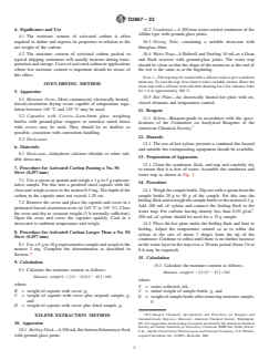 3.1 Oven Drying Test Method—A sample of carbon is put into a dry, closed capsule (of known weight) and weighed accurately.