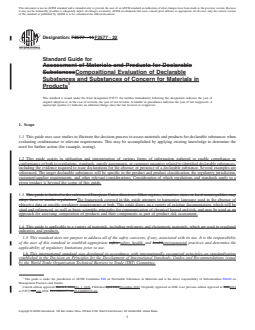 Keywords: ASTM F2577-22, declarable substances, substances of concern, material compliance, chemical composition, product conformity, restricted substances, supplier declarations, regulatory compliance, RoHS, REACH, ISO standards, product testing, material declaration, risk assessment.