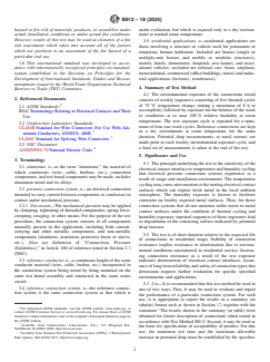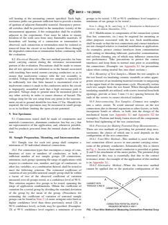 5.3 Use—It is recommended that this test method be used in one of two ways. First, it may be used to evaluate and report the performance of a particular connection system. For such use, it is appropriate to report the results in a summary (or tabular) format such as shown in Section 17, together with the statement “The results shown in the summary (or table) were obtained for (insert description of connection) when tested in accordance with Test Method B812. Second, it may be used as the basis for specification of acceptability of product. For this use, the minimum test time and the maximum allowable increase in potential drop must be established by the specifier. Specification of connection systems in...